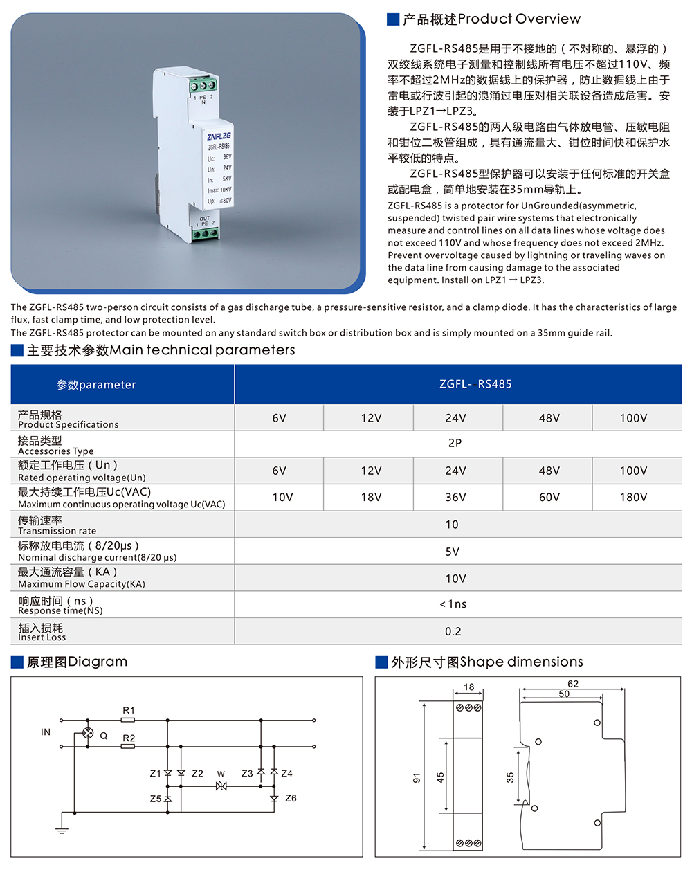 您當前的位置:首頁>產品展示> ZGFL-485保護器